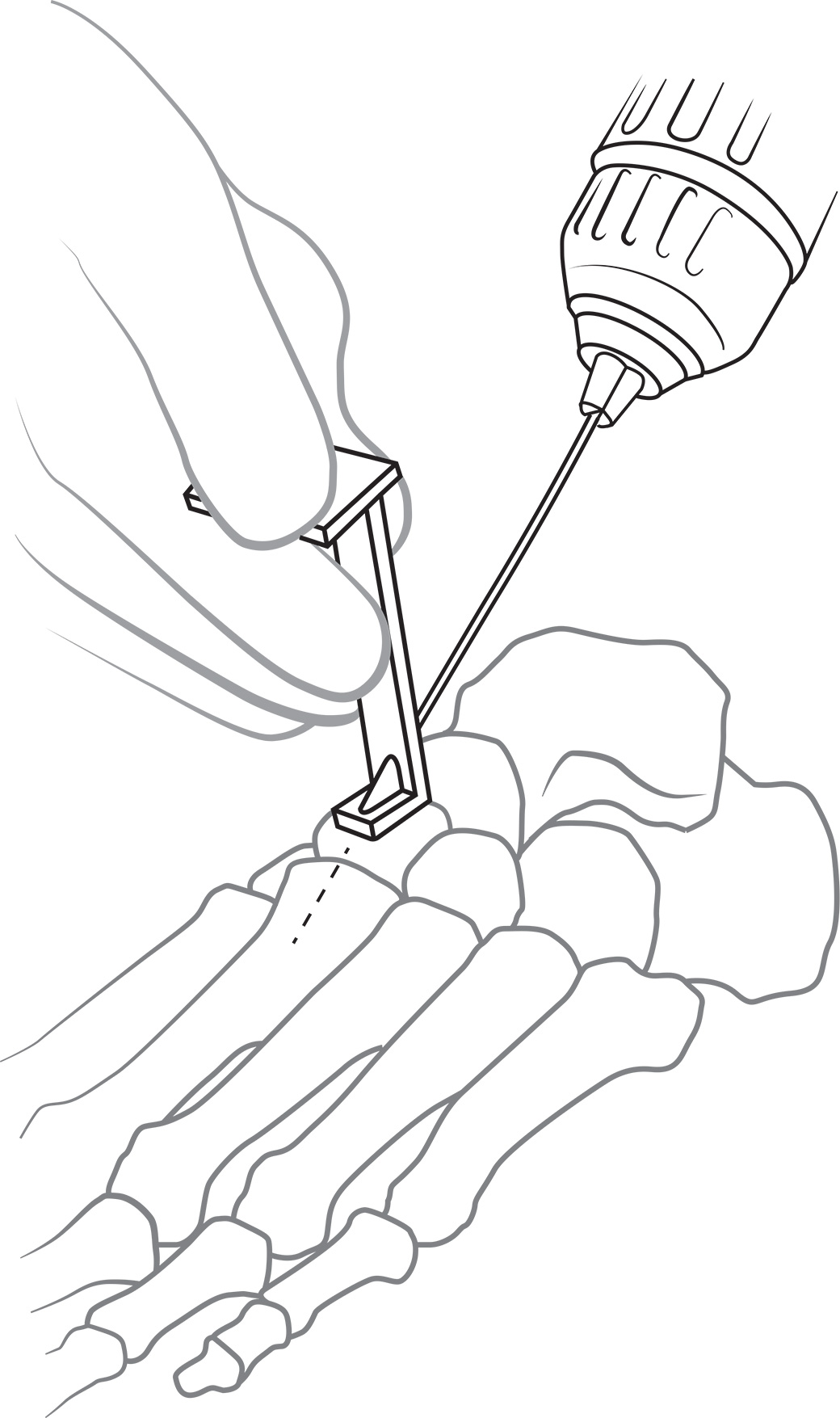 Designed to help with placement of guide wires and k-wires for cannulated screws and k-wires in foot and ankle surgeries, such as bunion surgery, midfoot fusion, and midfoot ORIF